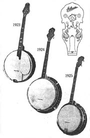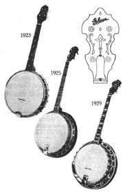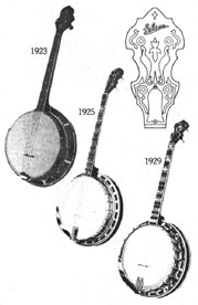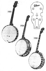 Several models graced the Gibson banjo line in this period. For detailed information see Banjo model features.