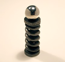 Tone chambers: The “tone chamber” was a cast ring that sat on top of the wood rim to add rigidity and mass to the “pot assembly” (banjo’s body) and enhance the vibrations of the (then) skin head. Several variations were created by Gibson, and these can be followed in my web page on the Evolution of Gibson Banjo Rims. It has been thought that the spring-loaded “ball bearing” tone chamber was designed to counter the effects of weather changes on the skin heads. This is not true, especially since any vertical change in the head’s position would cause improper playing action. The springs were employed to improve the resilience (springiness) of the tone chamber. The ball bearing tone chamber design is attributed to Lloyd Loar.