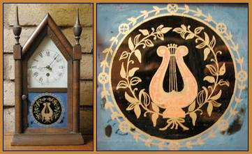 The lyre is one of the earliest known stringed instruments and was often used as a decorative element on early objects. This clock, dating back to 1910, depicts a lyre whose design is very similar to the lyre in Gibson’s label.